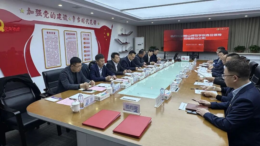秦海旺充分肯定了学校在服务地方发展、应用型人才培养和学科建设等方面取得的成果,并指出双方在发展理念上高度契合。他表示,将以此次战略合作框架协议的签署为起点,全力支持鞍山分公司与学校的深度合作,通过联合育人、实训共建与课题共研等方式,打造产教融合典范,既为企业发展注入“人才活水”,也为高校人才培养提供“实践沃土”,共同为辽宁全面振兴新突破贡献力量。 仪式上,校党委常委、校务委员郭延军与鞍山人寿党委书记、总经理李巍代表双方签署《中国人寿保险股份有限公司鞍山分公司与鞍山师范学院战略合作框架协议》,标志着校企合作迈入规范化、常态化发展新阶段。 签约仪式后,双方还围绕合作落地细节展开深入会谈,就人才联合培养、实训平台建设、校园保险服务等议题充分交换意见,达成广泛共识。未来,双方将共同推动合作从“框架”走向“深化”、从“试点”走向“常态”,重点共建“校企协同育人示范平台”,通过提供优质实习岗位、联合开发实训课程、共建双师型教学团队等举措,推动实践教学与行业前沿精准对接,助力学生成长成才与企业高质量发展双向赋能。 中国人寿辽宁省公司党委委员、副总经理程明,团体业务处相关负责人矣琳,鞍山人寿党委书记、总经理李巍,党委委员、副总经理黄博等企业领导;我校党委常委、校务委员郭延军,党委学生工作部(处)、管理学院、应用技术学院(健康产业学院)、教务处等相关负责人参加活动。